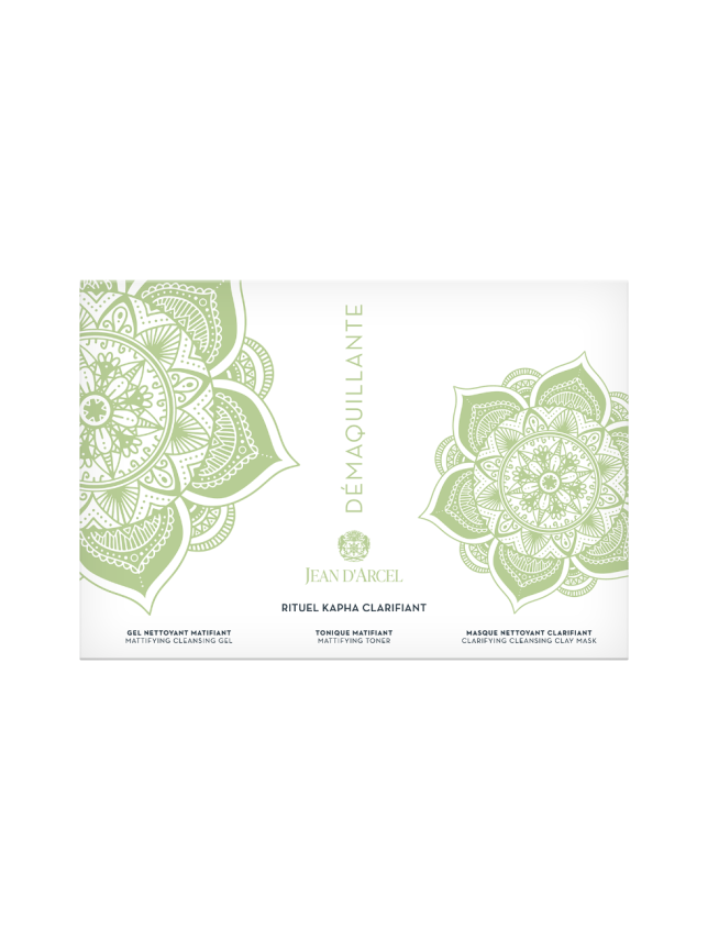 Entdecken Sie das Reinigungsset rituel kapha clarifiant, inspiriert von der ayurvedischen Lehre der Doshas, speziell für UNREINE, ÖLIGE HAUT entwickelt. Enthaltende Wirkstoffe entfernen überschüssigen Talg und wirken dadurch effektiv gegen Unreinheiten. Das Hautbild erscheint mattiert und verfeinert. Schenken Sie Ihrer Haut eine klärende Pflege für ein reines und ebenmäßiges Aussehen.